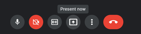 For the desktop application, use the default windows theme for buttons, they look great all ways. Google Meet's "present now." That's "share screen" by a smart-ass designer. Follow standards for as far as it takes you before you commit divergence.