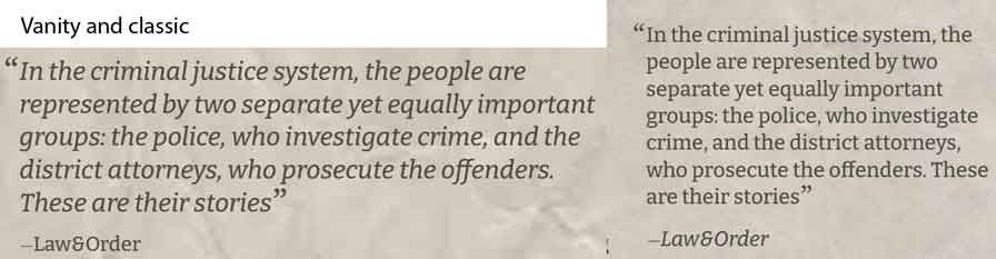 The final test is creating a pull quote, and see which one holds. Here are the additional vanity styles, with the update in variables to fit in the 150% increase in text font size.